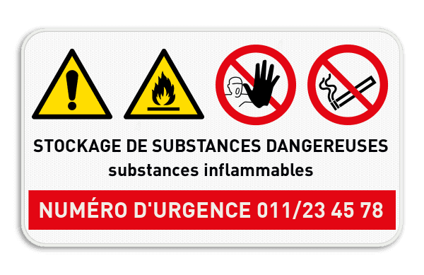 Panneau de sécurité stockage de produits dangereux + numéro d'urgence