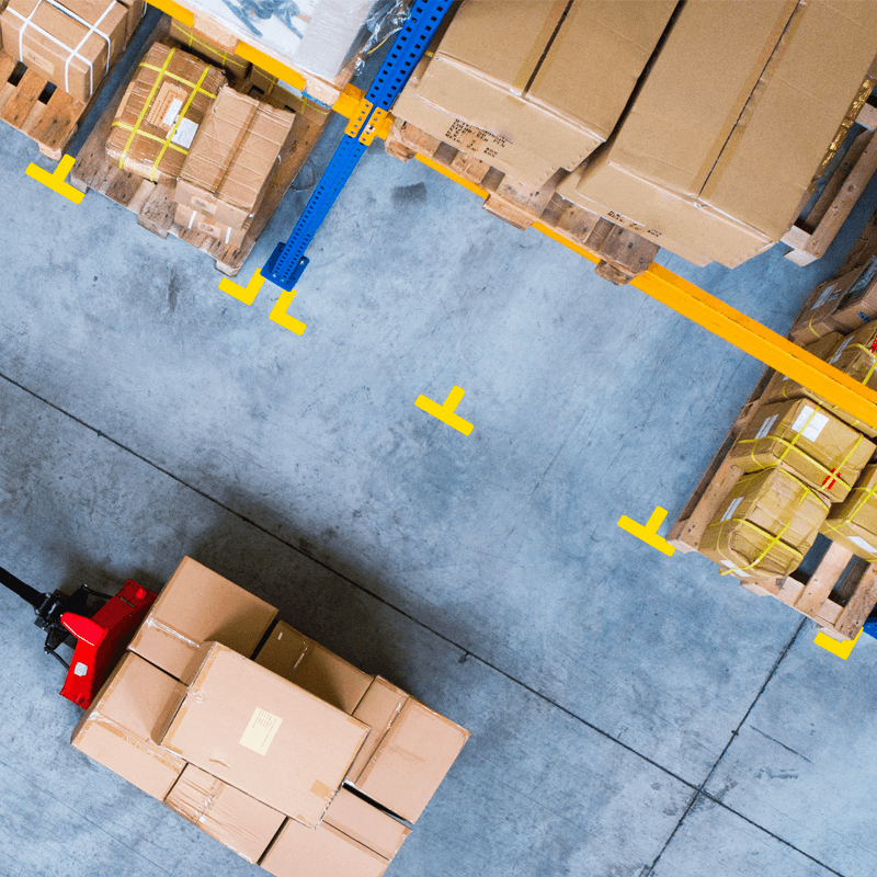 Pochoir / modèle de pulvérisation 'angle 90°' pour l'application facile de marquage au sol. Indiquez clairement les coins extérieurs d'un emplacement de palette ou d'une place de parking.
