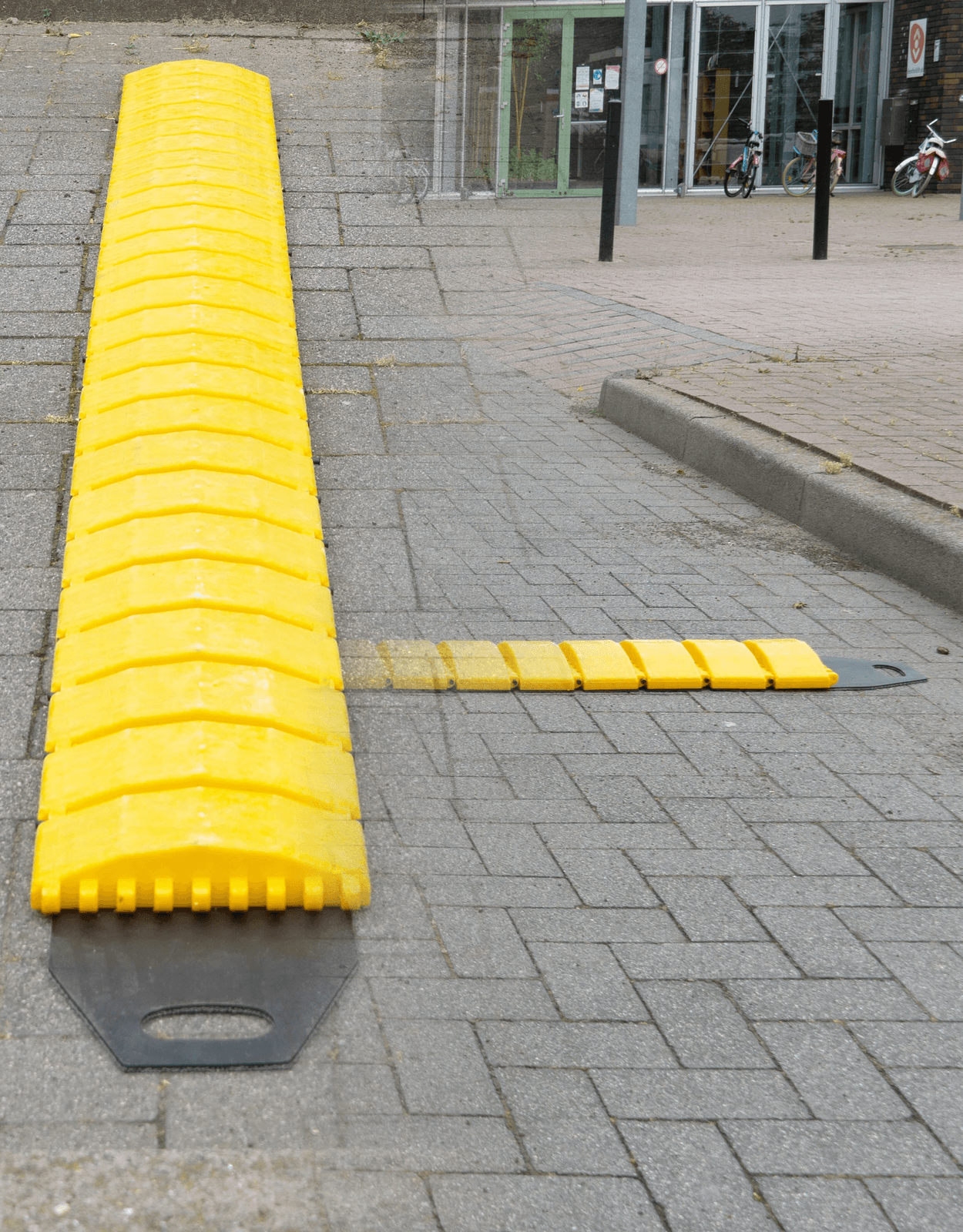 Ce ralentisseur en plastique jaune enroulable est conçu pour réduire la vitesse des véhicules et améliorer la sécurité routière. Facile à installer et à déplacer, il est idéal pour une utilisation temporaire ou permanente.