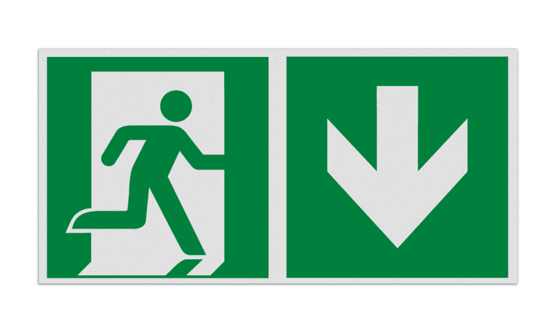 Autocollant ou panneau - E002 - Sortie de secours avec flèche de direction