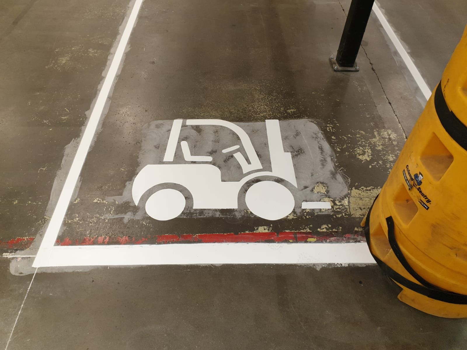 Symboles et pictogrammes de marquage au sol pour les entrepôts et les halls (de production) en différentes couleurs et tailles.